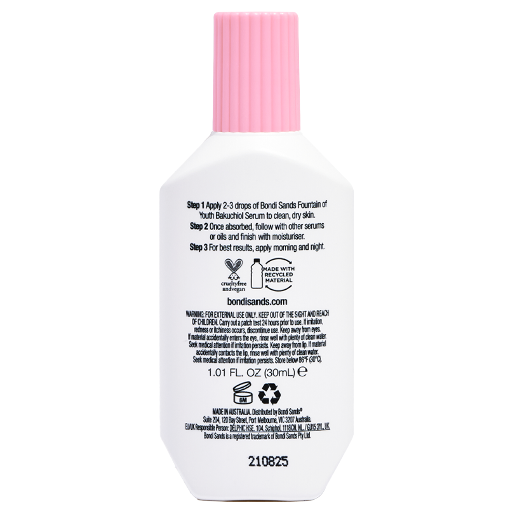 Apply 2-3 drops of Bondi Sands Fountain of Youth Bakuchiol Serum to clean, dry skin.