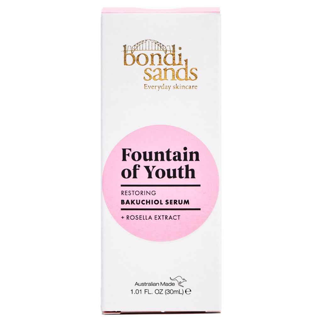 Bondi Sands Fountain Of Youth bakuchiol serum is enriched with Bakuchiol, Sunflower Seed and Rosella Extract to hydrate, fade pigmentation and soften your skin.