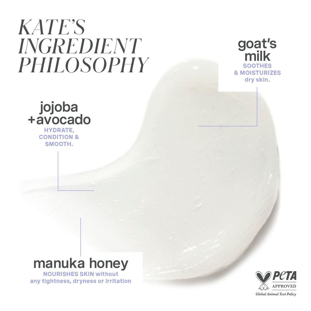 The gentle, creamy formula is enriched with goat milk proteins to help soothe dry and sensitive skin, while vitamin rich Manuka honey provides intense nourishment without irritating or drying the skin. Dirt, oil, makeup and other impurities are gently lifted away, leaving the skin feeling clean and pampered.
